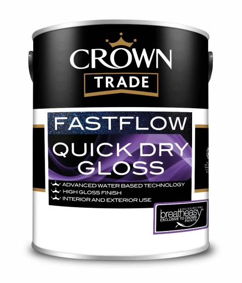 Our Crown Trade Fastflow Quick Dry Gloss is a high-performance flexible gloss system incorporating a premium quality combined primer/undercoat and durable high gloss topcoat.