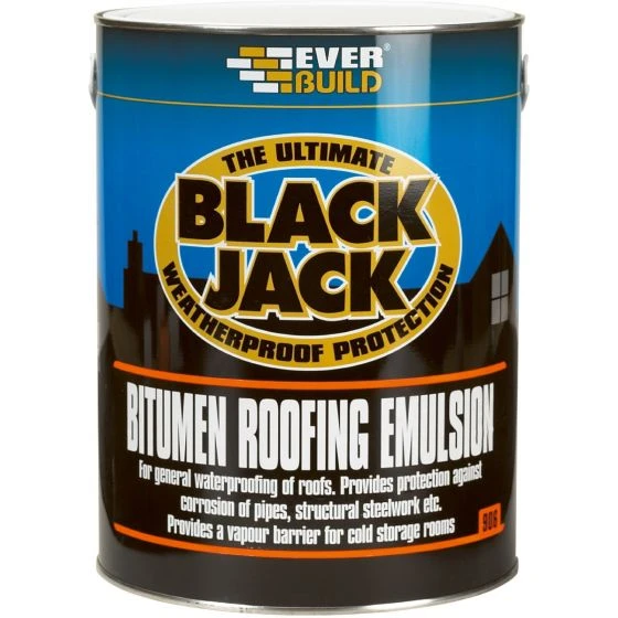 Everbuild Black Jack Bitumen Roofing Emulsion is a stable bitumen/water emulsion of medium brushing consistency which dries to a black, flexible coating. It has been designed for the waterproofing of roofs but it is also suitable to be used for corrosion protection on pipes and structural steel.