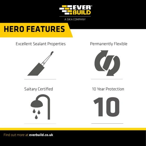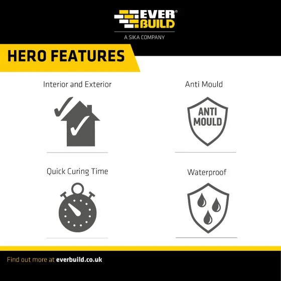 Everbuild Forever White Anti-mould is a superior silicone sealant that is permanently waterproof and flexible and ideal for sealing shower bases and cubicles, wet rooms, around baths, sinks and basins. It is also ideal for use in kitchens and utility rooms along with sealing window and door frames.