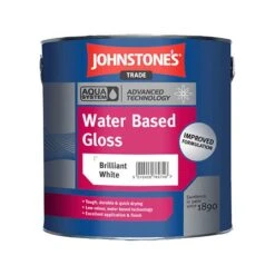Johnstones Trade Aqua Water Based Gloss Paint Brilliant White is an innovative, water-based, high sheen gloss paint, designed to be used on both wood and metal, interior and exterior. Developed to act like a traditional gloss, meaning it flows well and can be applied easily as well as being tough and durable. It does however benefit from being water-based, boasting a low odour and quick-drying times. Â