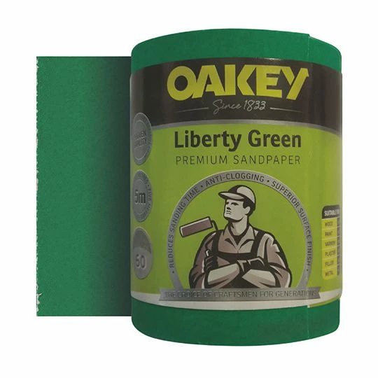 This self sharpening, anti-clogging sandpaper is suitable for both hand and machine use. Oakey Liberty green lasts up to 10 times longer than standard sandpaper and can be used on almost any surface including; wood, paint, varnish, plaster, filler and metal