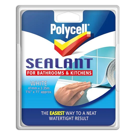 Polycell Sealant Strip designed to be used as an alternative to traditional silicone this flexible sealant strip provides a watertight seal and is a great way to cover imperfections. Polycell Bathroom & Kitchen Sealant is a great way to cover imperfections. The strip is flexible, can easily be wiped clean and is a perfect alternative to gun and tube sealants. Suitable for: Ceramic tiles, enamel and plastic baths and sinks, porcelain, stainless steel, laminate worktops, painted or varnished wood, gloss and emulsion painted surfaces and glass