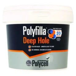 Polycell Trade Pollyfilla Deep hole Filler is a two part plaster based filler, designed to provide a structurally sound fill for holes in walls up to 50mm in size. The Deep Hole Filler dries to a structurally sound repair in only 20 minutes and is suitable for both internal and external application.