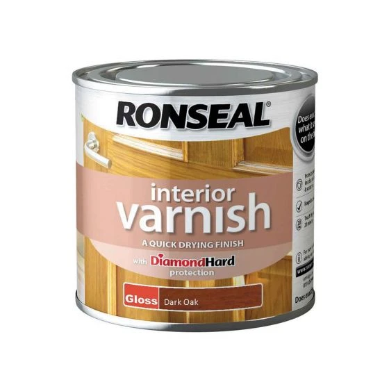 Ronseal Diamond Hard Interior Varnish Gloss Dark Oak provides tough protection to all interior wood, from wooden furniture to skirting boards, leaving a beautiful natural finish. It also dries in 20 minutes, allowing for a quick turnaround.Â