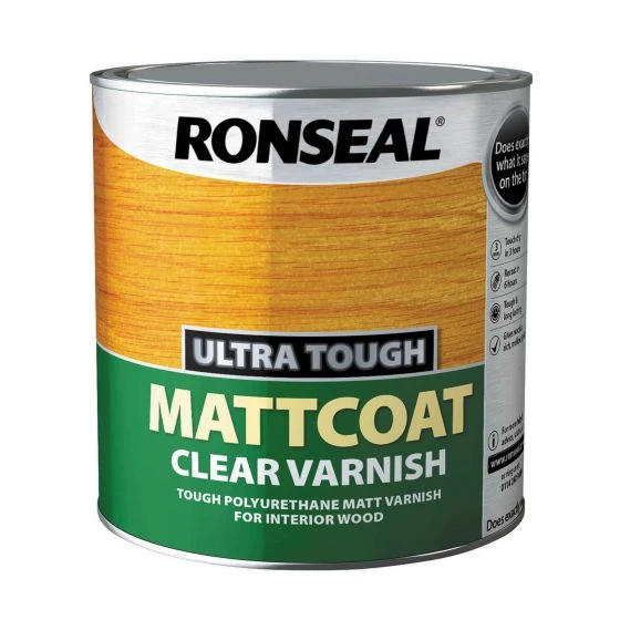 Ronseal Ultra Tough Clear Varnish is designed to protect wood against knocks, scrapes and chemical damage such as water and heat. This clear varnish has a matt finish that is both rich and mellow which helps to bring out the natural beauty in wood. Ronseal Ultra Tough Varnish can be used on all interior wood excluding flooring and is available in different sizes and colours.