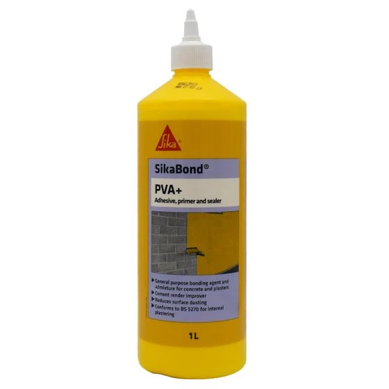 Sika PVA+ Adhesive is commonly diluted and used as a sealer / primer before the application of screeds and plasters it is also used as a mortar admixture and as an adhesive between common building materials (provided one surface is porous).