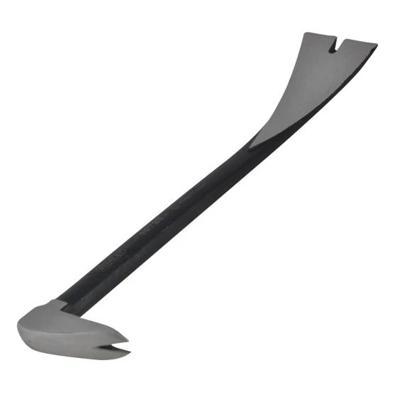 The moulding pry bar is made from heat treated, forged, high carbon steel. The contoured bar makes pulling nails, prying and lifting easier and the flat surface allows users to cleanly pry moulding and trim, which reduces material damage.